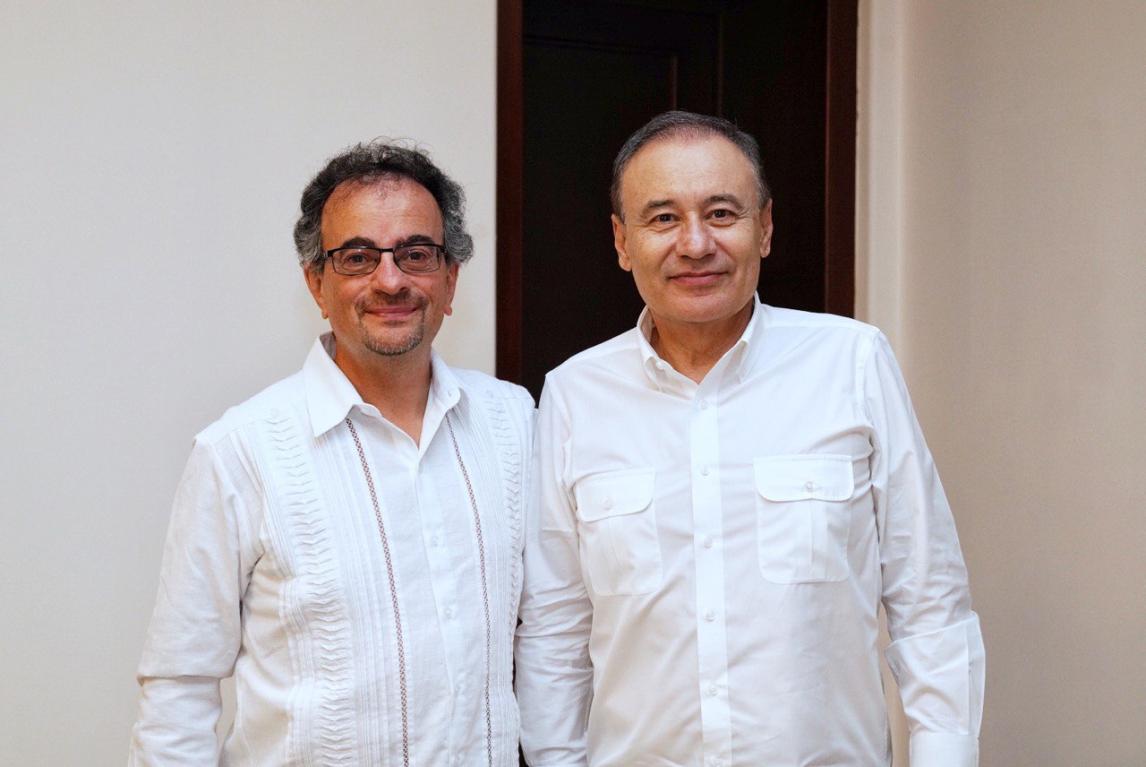Hermosillo, Sonora; 9 de agosto de 2023.- Como parte de las acciones de promoción del estado como un destino de inversión en materia de energías limpias, el gobernador Alfonso Durazo Montaño sostuvo un encuentro con el embajador del Reino Unido, Jon Benjamin, a quien le presentó el Plan Sonora de Energía Sostenible y el Programa Social de Generación Solar Distribuida.