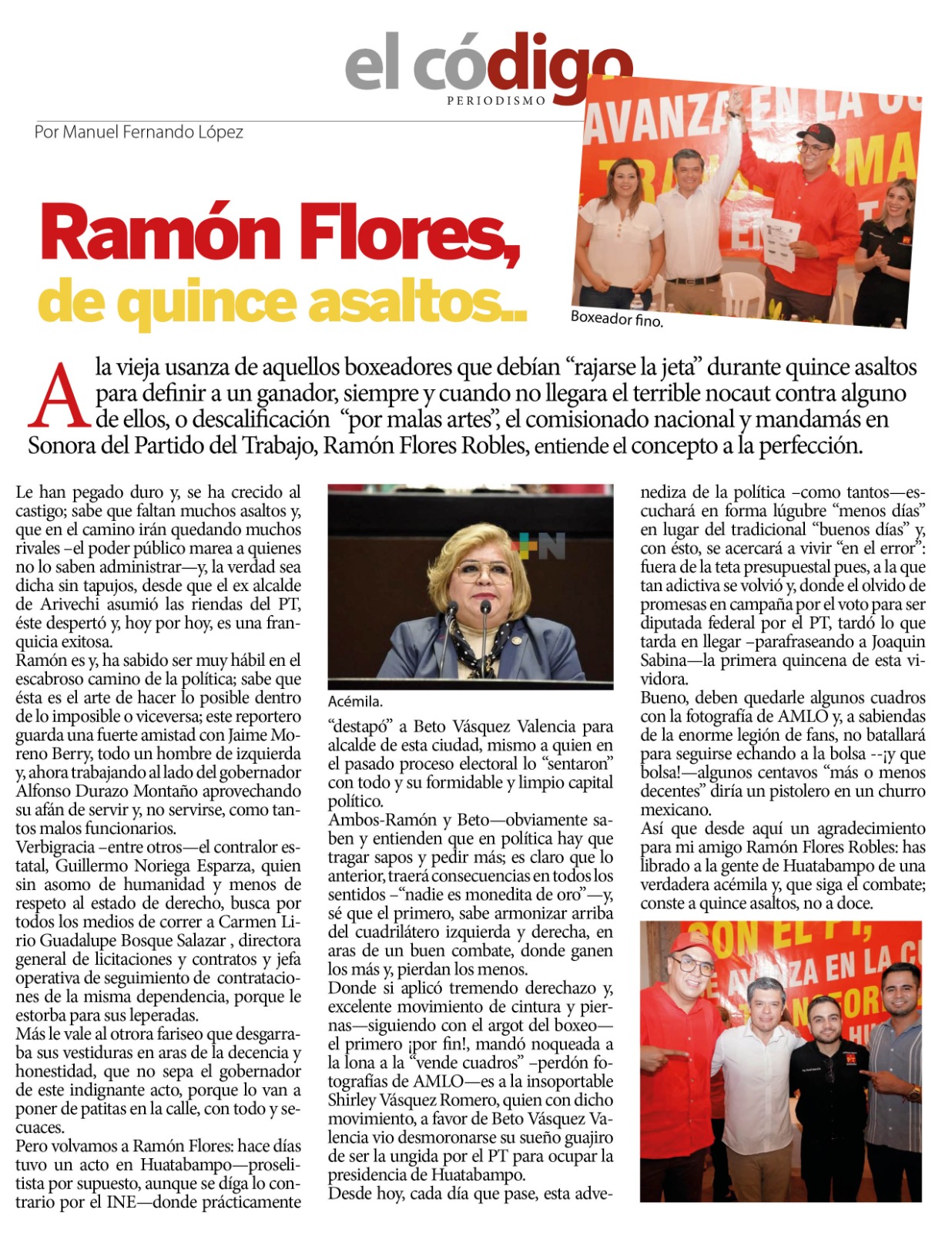 El CódigoManuel Fernando López A la vieja usanza de aquellos boxeadores que debían “rajarse la jeta” durante quince asaltos para…
