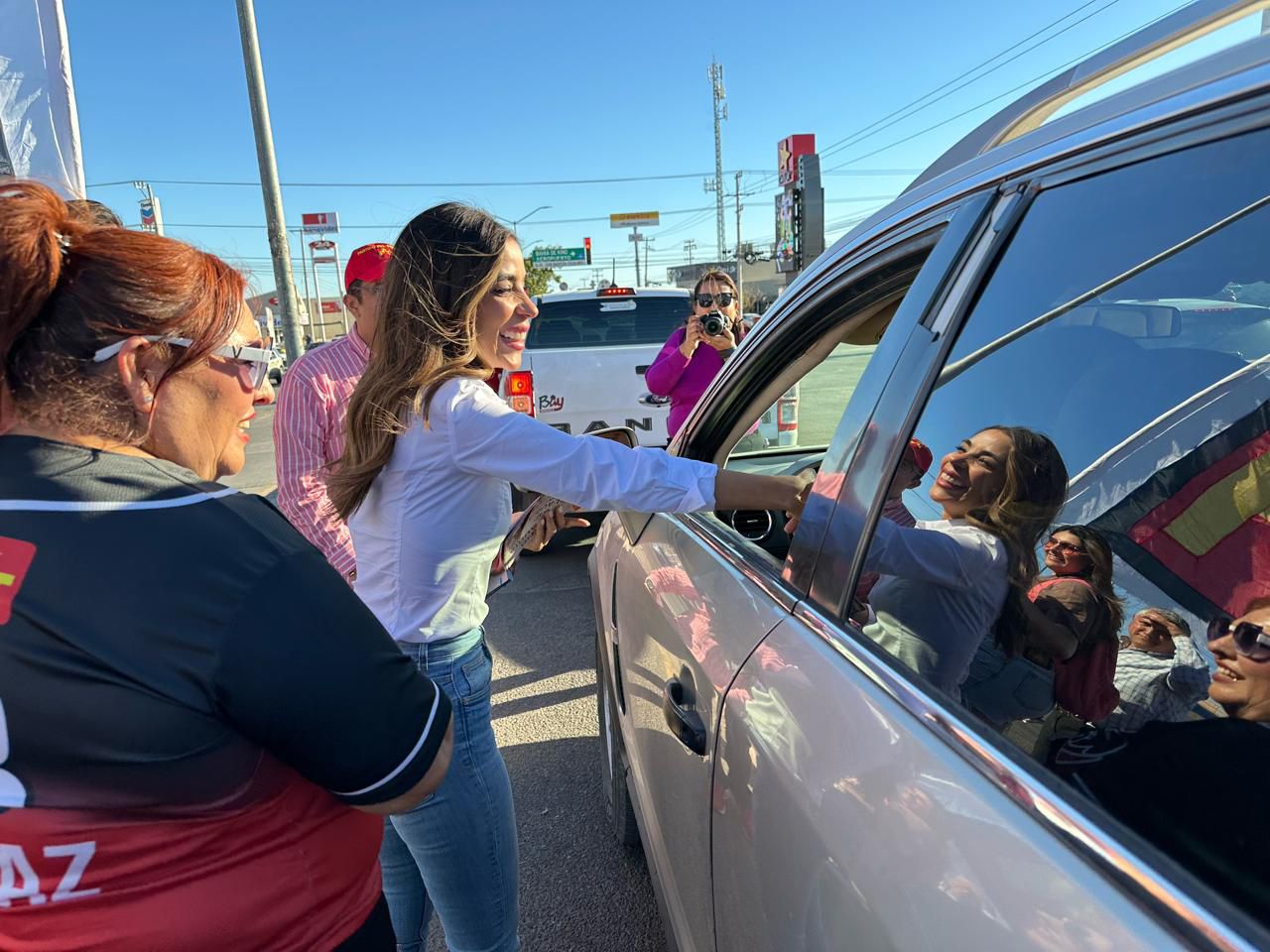 Acompañada de un grupo de jóvenes y simpatizantes, la candidata inició con una pega de calcas y entrega de volantes en el cruce de los bulevares Solidaridad y Juan Bautista de Escalante, y posteriormente se trasladó a la colonia Tierra Nueva, donde realizó un recorrido de casa en casa.